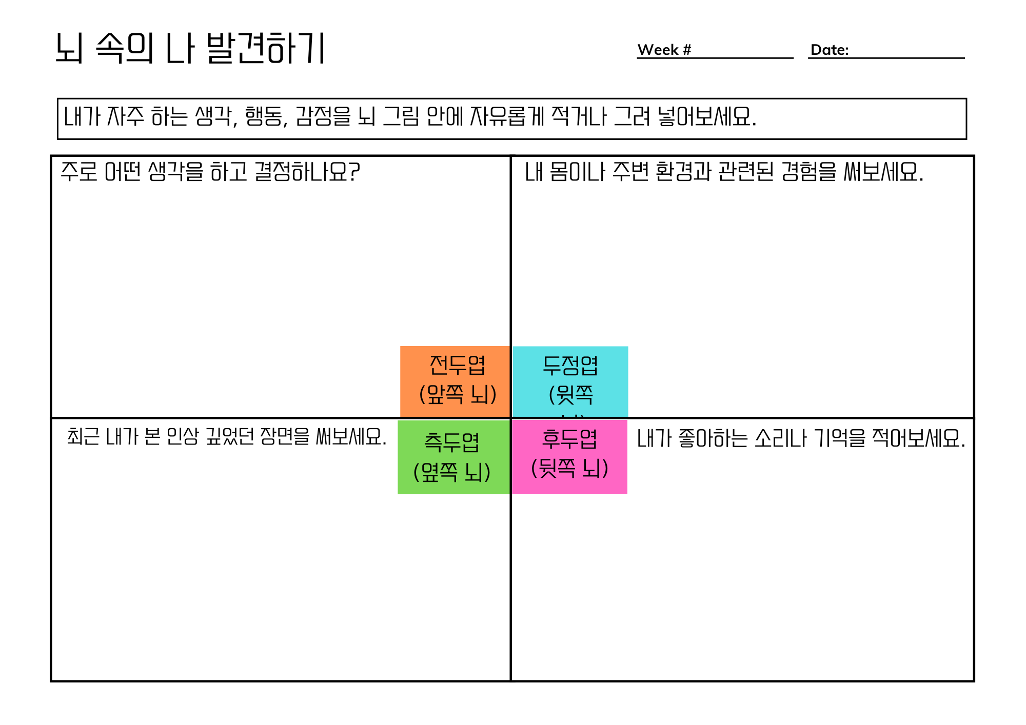 다만, 단순히 나의 흥미를 찾는 것보다 좀 더 아이들의 내면에서 기인한, 진정성있는 주제가 만들어지길 바라는 마음에 사회정서교육과 연결지어서 활동지를 만들었다.